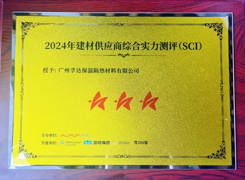 同时,孚达公司XPS板及外墙内保温系统获得“2024 SCI综合指数测评榜单”三星供应商,充分说明行业及客户对孚达产品及服务的高度认可。